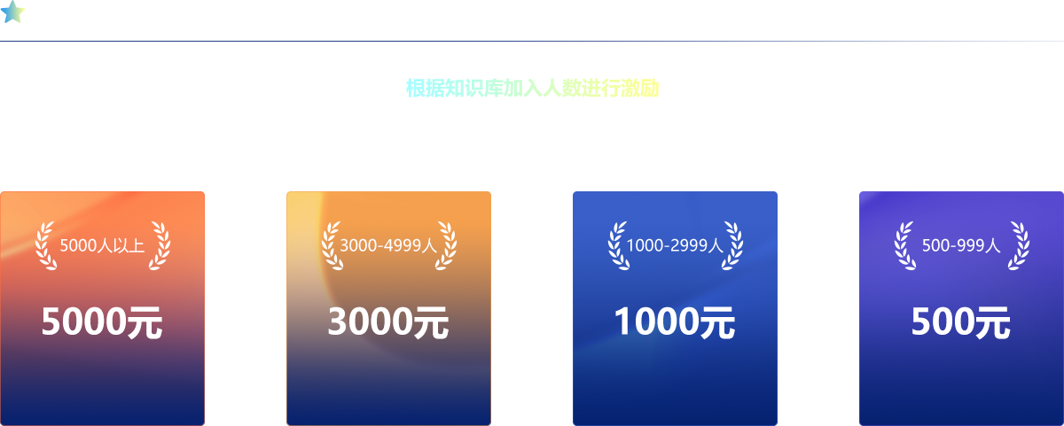 参与投稿的学校官方组织(院系、学生会等),完成ima蓝V认证后,根据投稿知识库累计加入人数获得对应梯度现金激励。该现金激励仅限学校官方组织参与,学校官方组织不可参与个人用户激励;同一组织多个知识库参与活动取加入人数最高的知识库进行活动激励,其他知识库不再参与活动激励。同一组织仅能获得一次现金激励。知识库发布1年内不得删除,否则将不计入活动激励或追回现金激励。现金激励仅限通过知识号认证的学校官方组织领取。