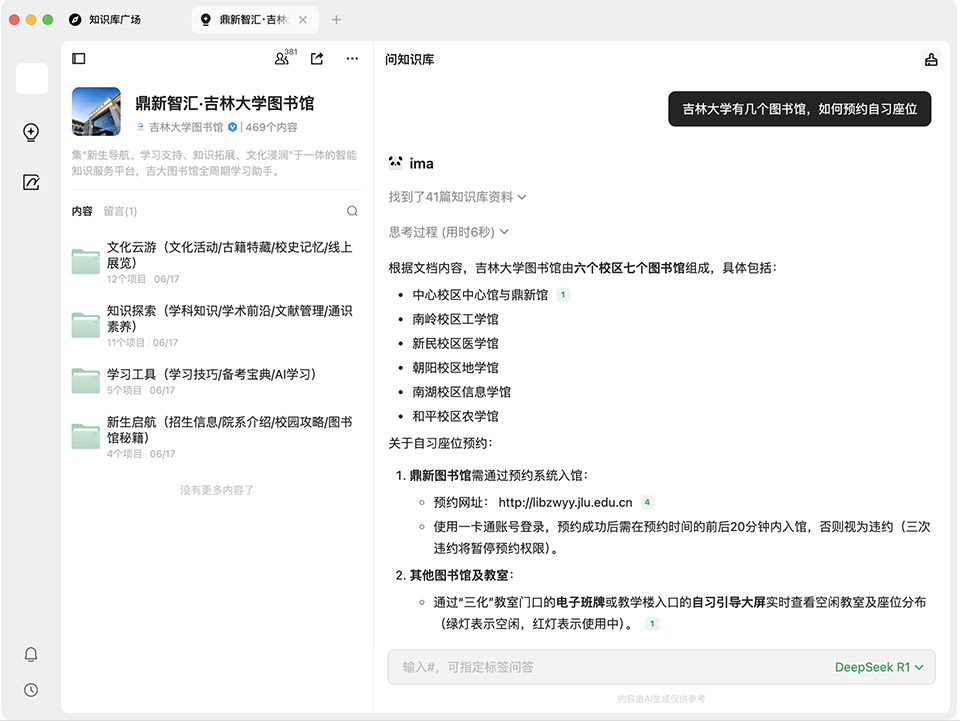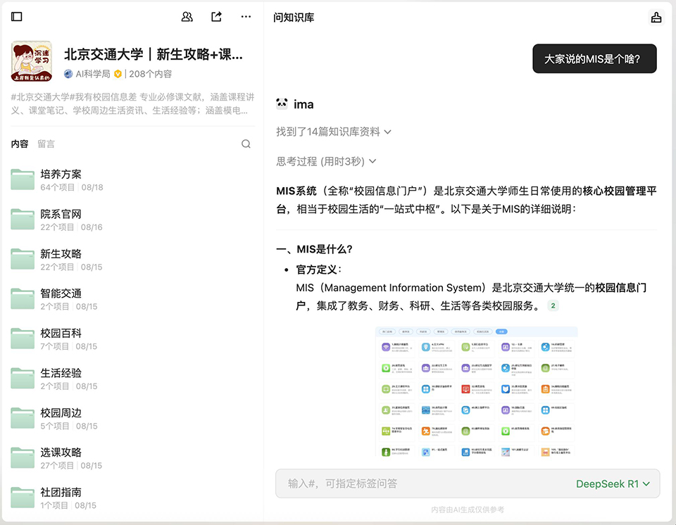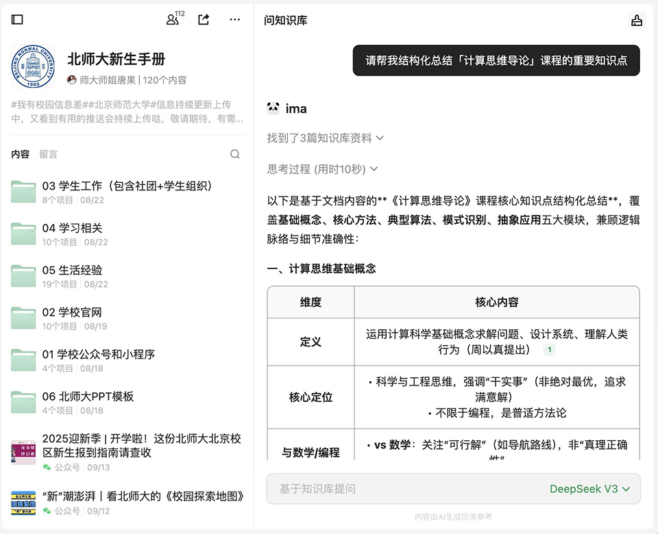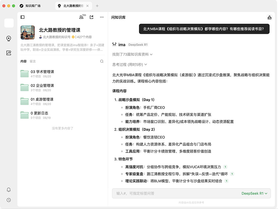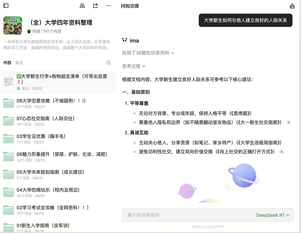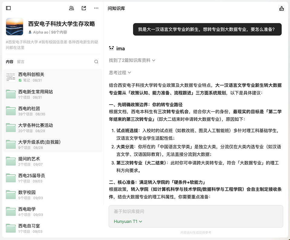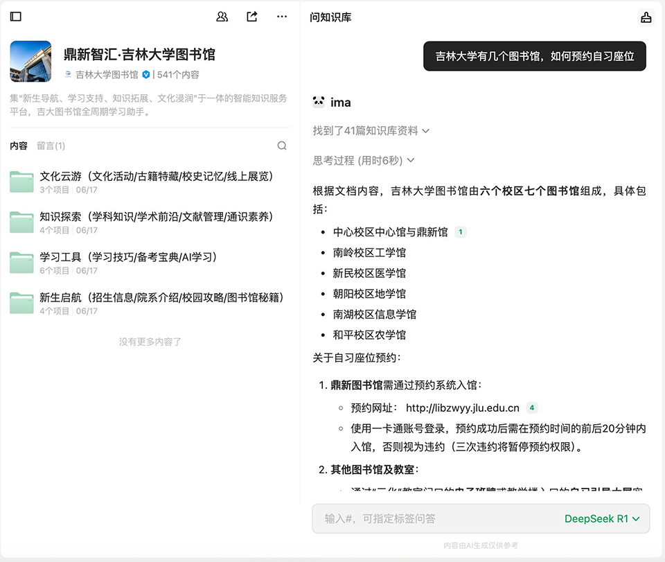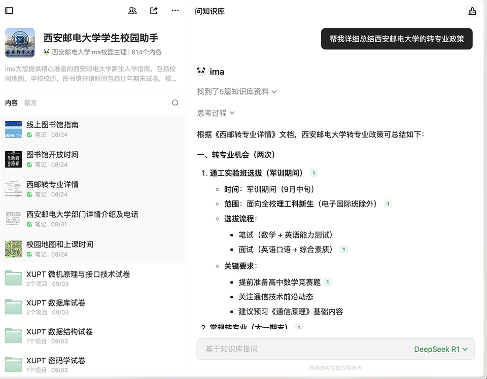 ima是腾讯旗下的AI工作台,以「知识库」为核心特色,并提供“问”“读”“写”智能新体验,目前已接入腾讯混元大模型和DeepSeek R1、V3模型。