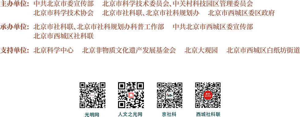此次以“赓续中华文脉,繁荣首都社科,建设贯彻落实习近平文化思想的首善之区”为主题的社科普及活动,由中共北京市委宣传部、北京市科委、中关村管委会、北京市科协、北京市社科联、北京市社科规划办、北京市西城区委区政府联合主办,通过线上线下相结合的方式,在北京大观园主会场、19个社科普及基地及社会组织分会场同步开展,为首都市民呈上了一场兼具思想深度与文化温度的社科普及盛宴。[详情]
