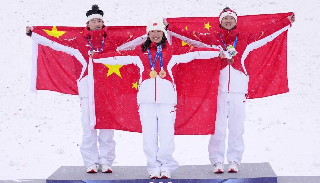 在当日举行的冬奥会自由式滑雪混合团体空中技巧决赛上,中国选手徐梦桃和王心迪同时站到了领奖台上,这一对冠军夫妻与队友李天马共同获得了该项目的铜牌。[详情]